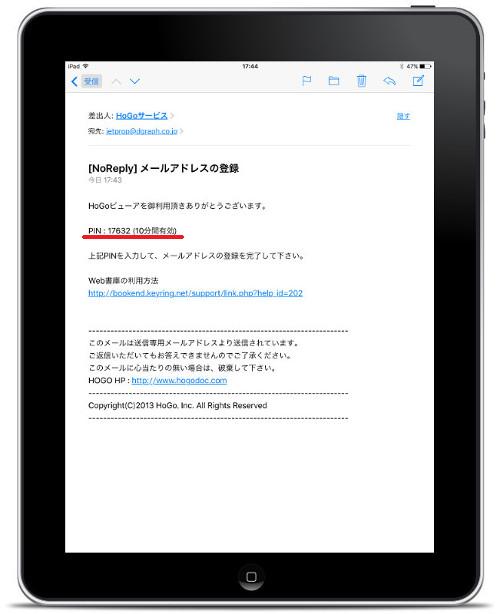 デジタル版タブレットのご購入時に登録されたメールアドレスを使用して、お客様ご利用のiPad、iPhone、Android、Windowsタブレット、WindowsPCなどで、確実に通常のメール受信を行えることをご確認ください。認証用のPINコード自動送信にメール受信が必須となります。