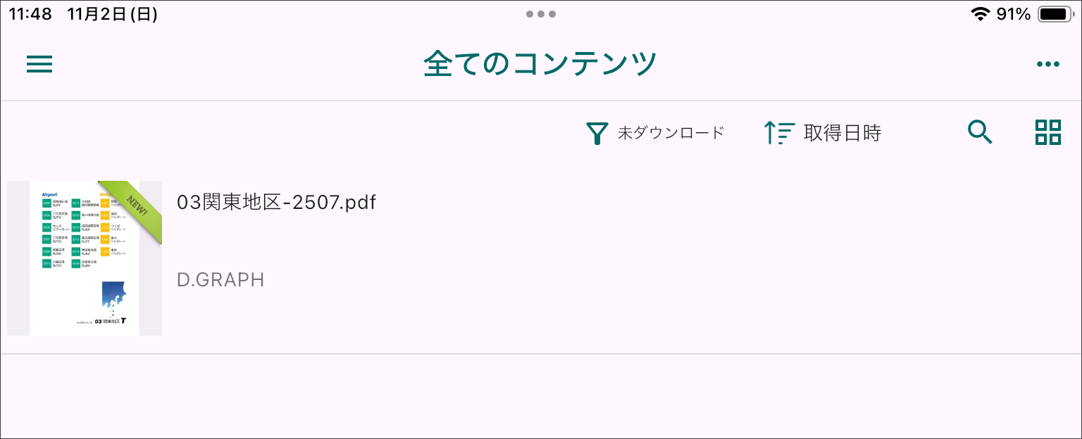(4)本棚「全てのコンテンツ」画面に移動して、アップデータされた新しい各ファイルの閲覧を開始し てください。