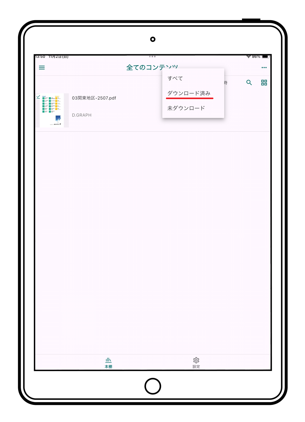 2. 本棚から"全てのコンテンツ"の「未ダウンロード」を開いてください。