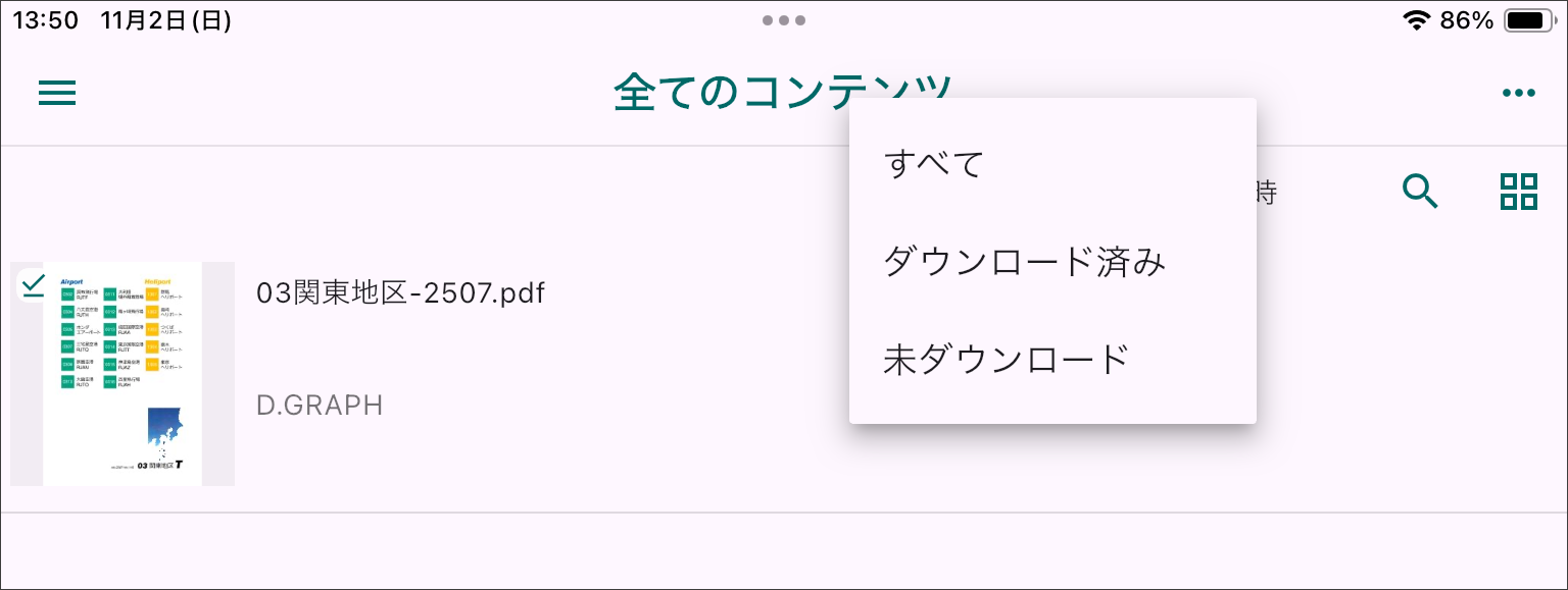 全てのコンテンツの「ダウンロード済み」にはアップデータされた新しいファイルだけが表示されます。