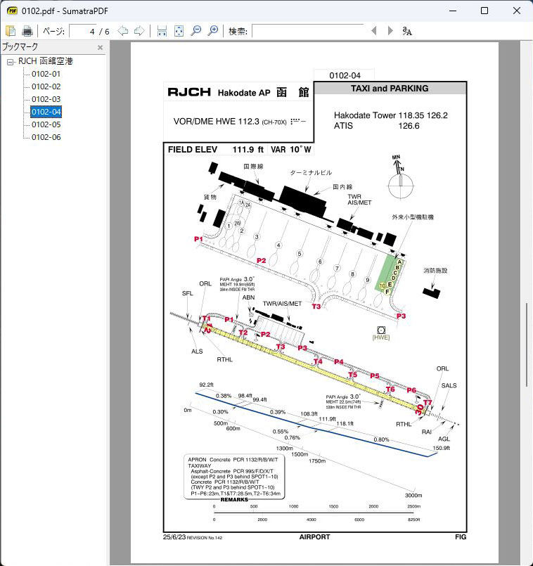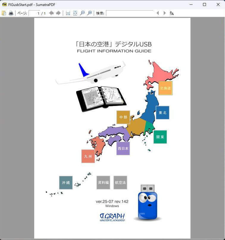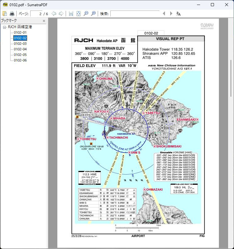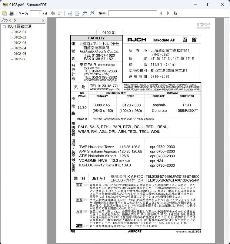 - 選択した空港のトップページ(01ページ)がブックマーク(目次)表示で切り替わります。ページ表示の初期値はモバイル端末などでの使用を考慮し、