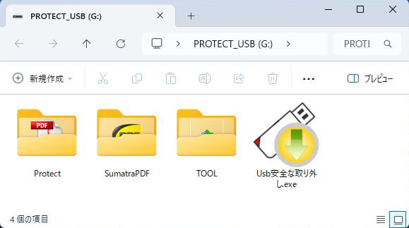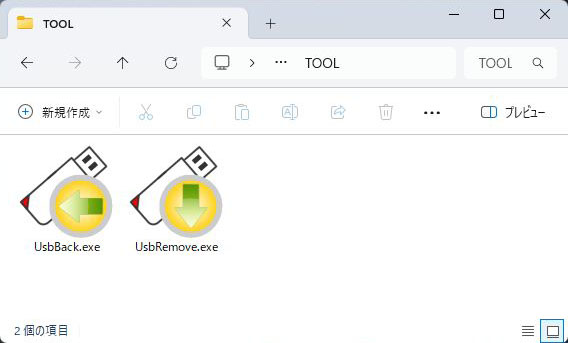 - TOOLフォルダ:UsbBack.exe(USB挿入時画面に戻す)とUsbRemove.exeを収納。