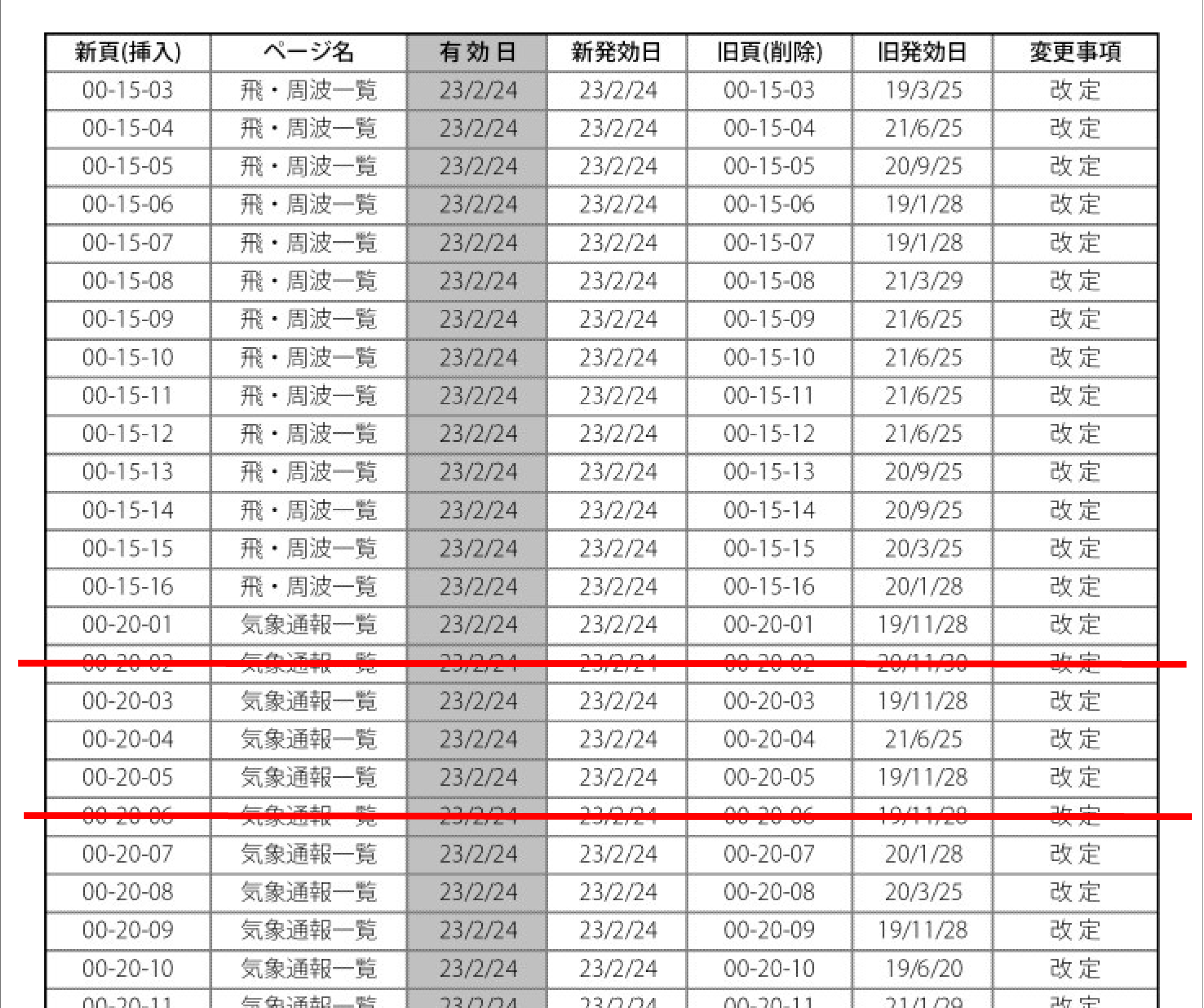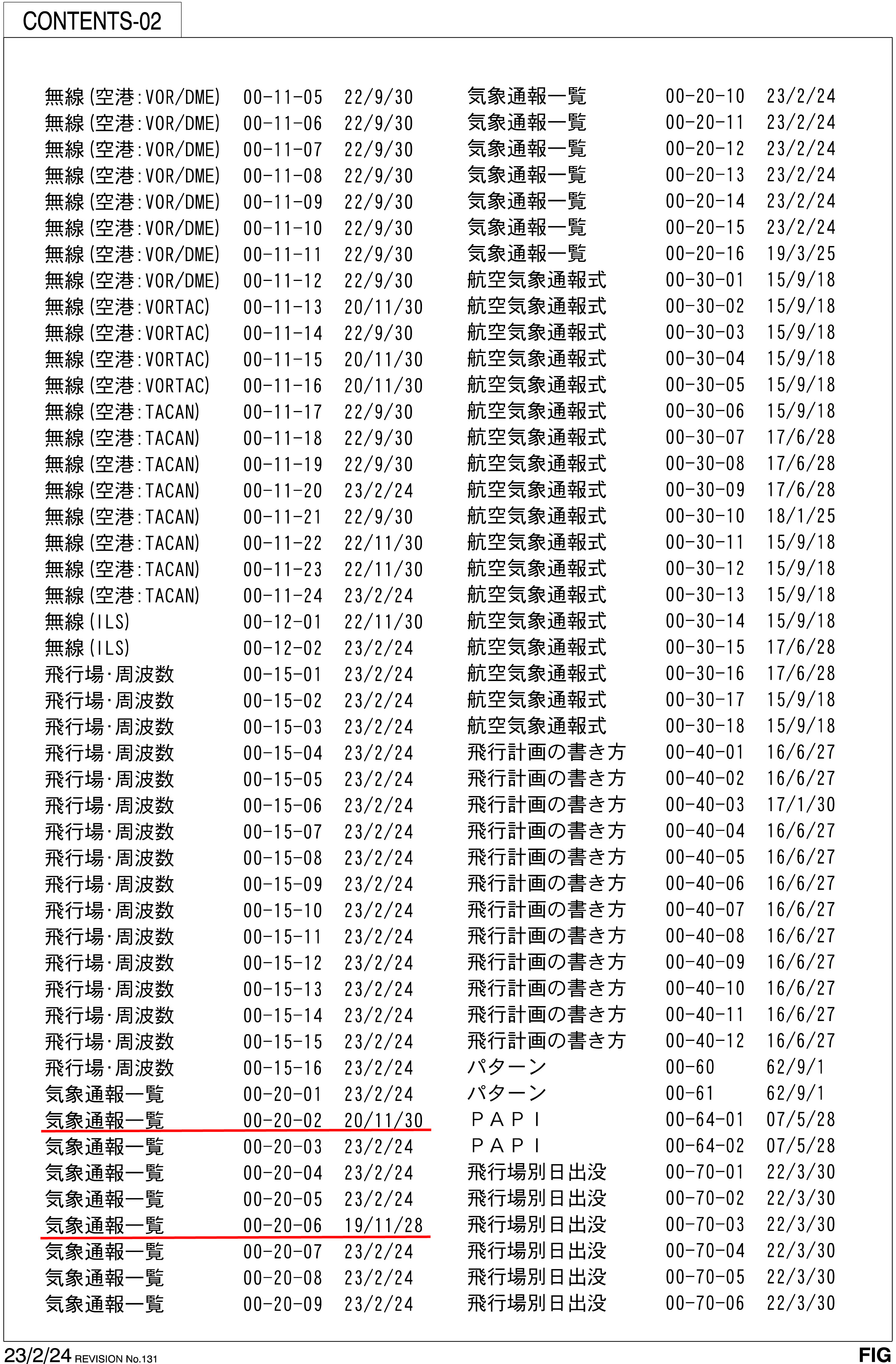・40行目 気象通報一覧 00-20-02 23/2/24(誤) → 20/11/30(正)